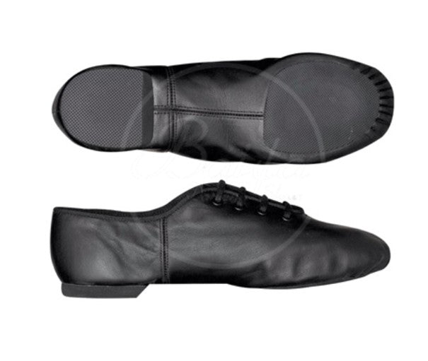 En mjuk skinnsko i kalvskinn med delad sula för jazzdans. Skon har gummiförstärkning under trampdynan och en gummiklack.